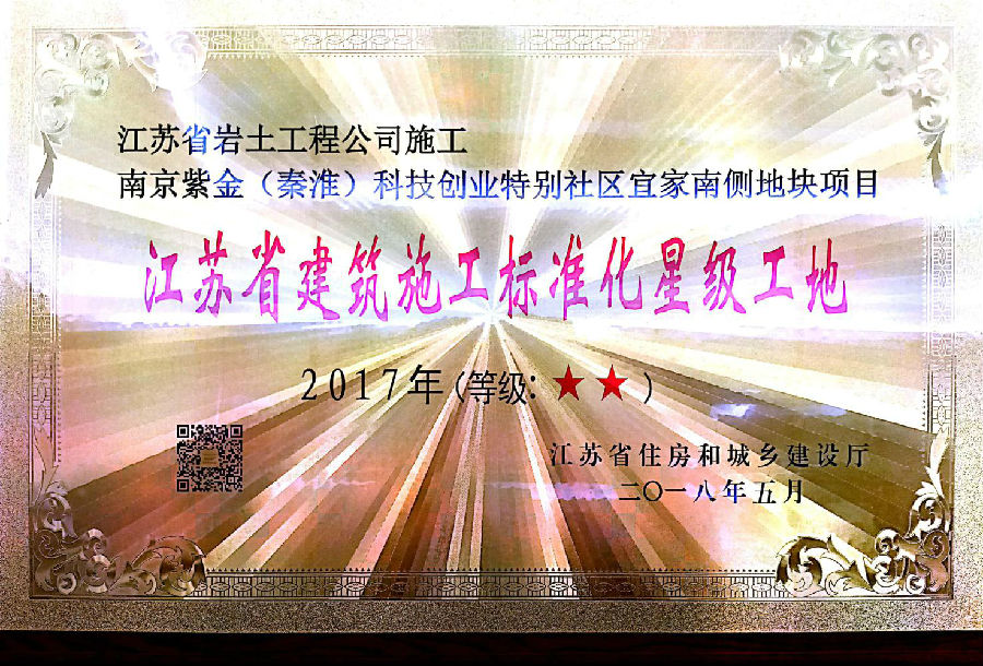 2017年度江苏省建筑施工标准化星级工地(南京紫金(秦淮)科技创业特别社区宜家南侧地块项目)