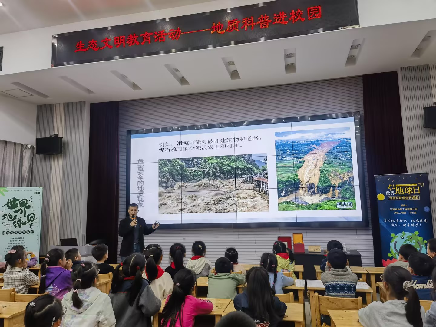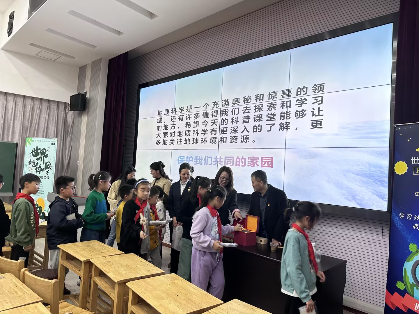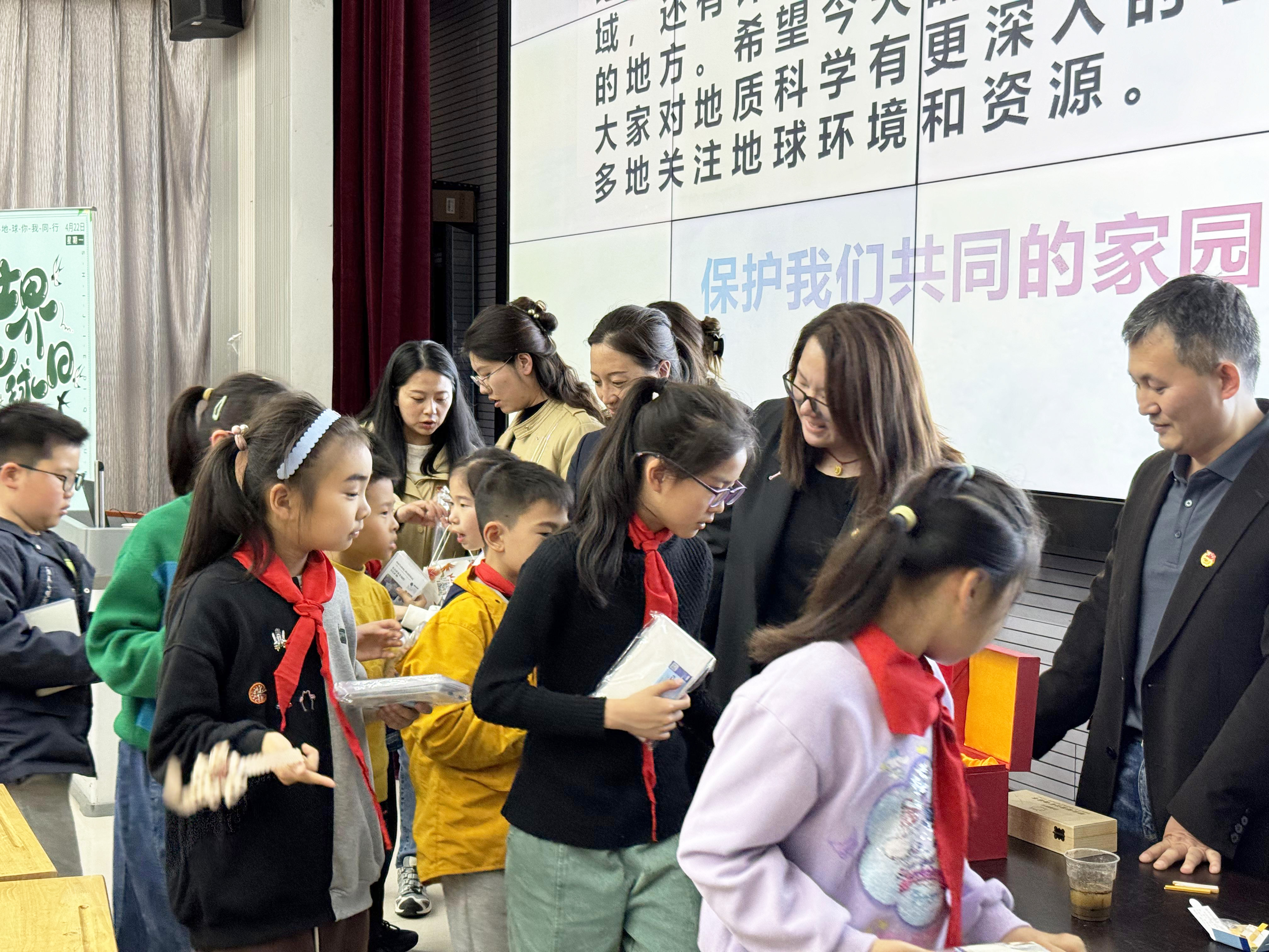 在世界地球日即将来临之际,一场别开生面的科普活动在汉江路小学展开。岩土公司、苏地公司、世纪山水、物资公司、山水酒店集团与江苏省地热能源学会携手,为汉江路小学三年级的200名孩子带来了一堂精彩纷呈的地质主题科普课。