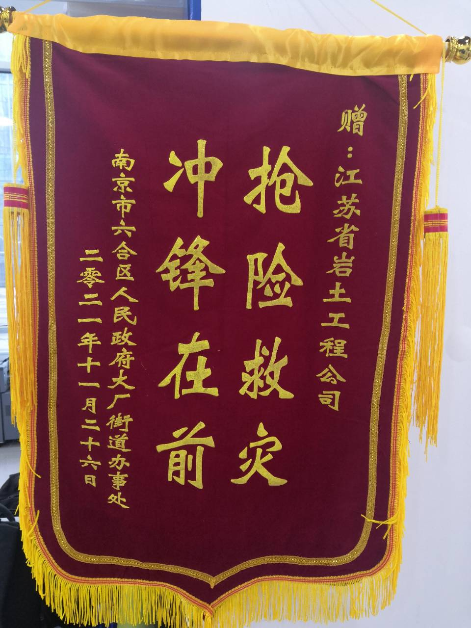 2021年荣获南京市六合区人民政府大厂街道办事处颁发的“抢险救灾 冲锋在前”锦旗