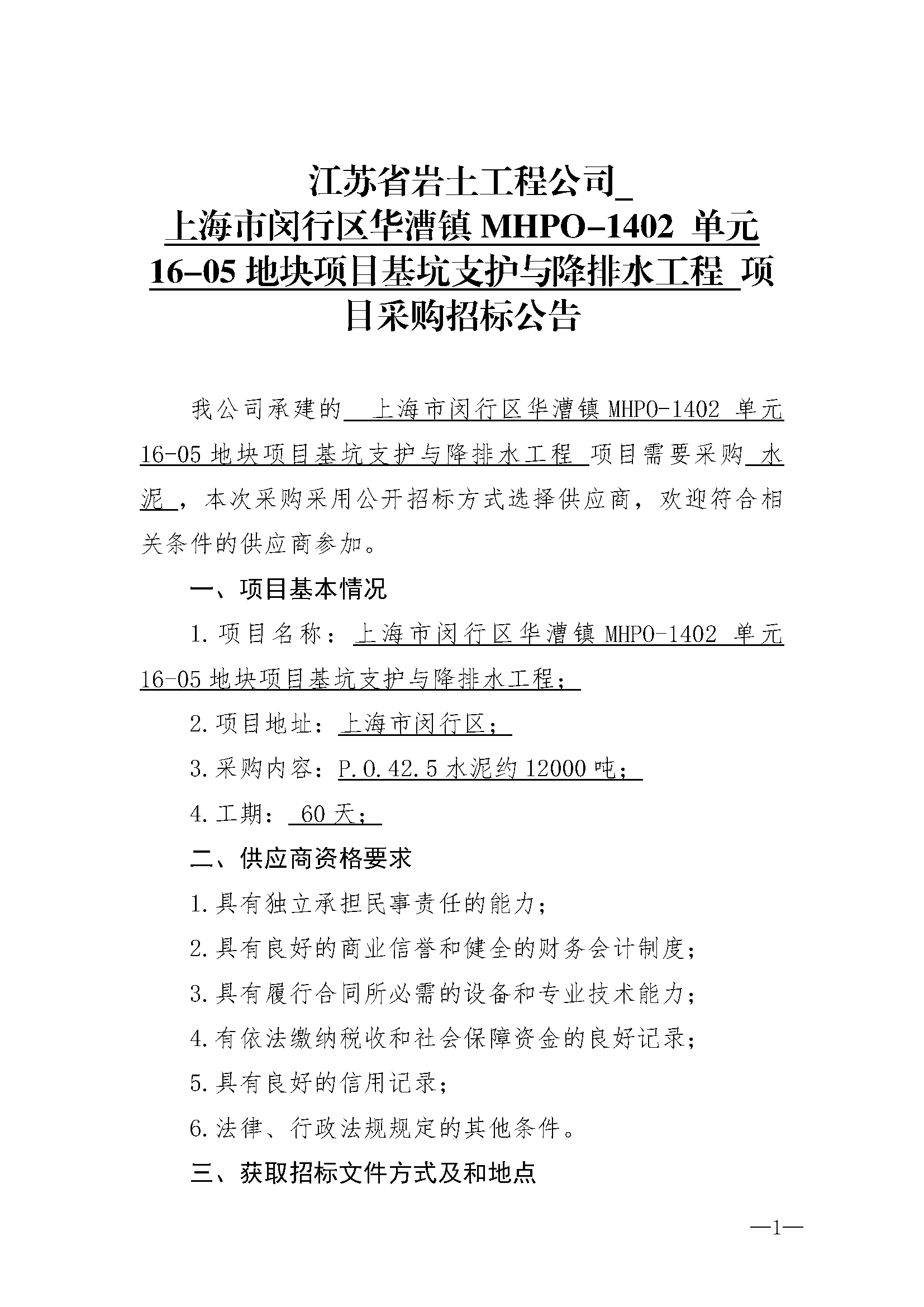 上海市闵行区华漕镇MHPO-1402 单元16-05地块项目基坑支护与降排水工程 项目采购招标公告.pdf