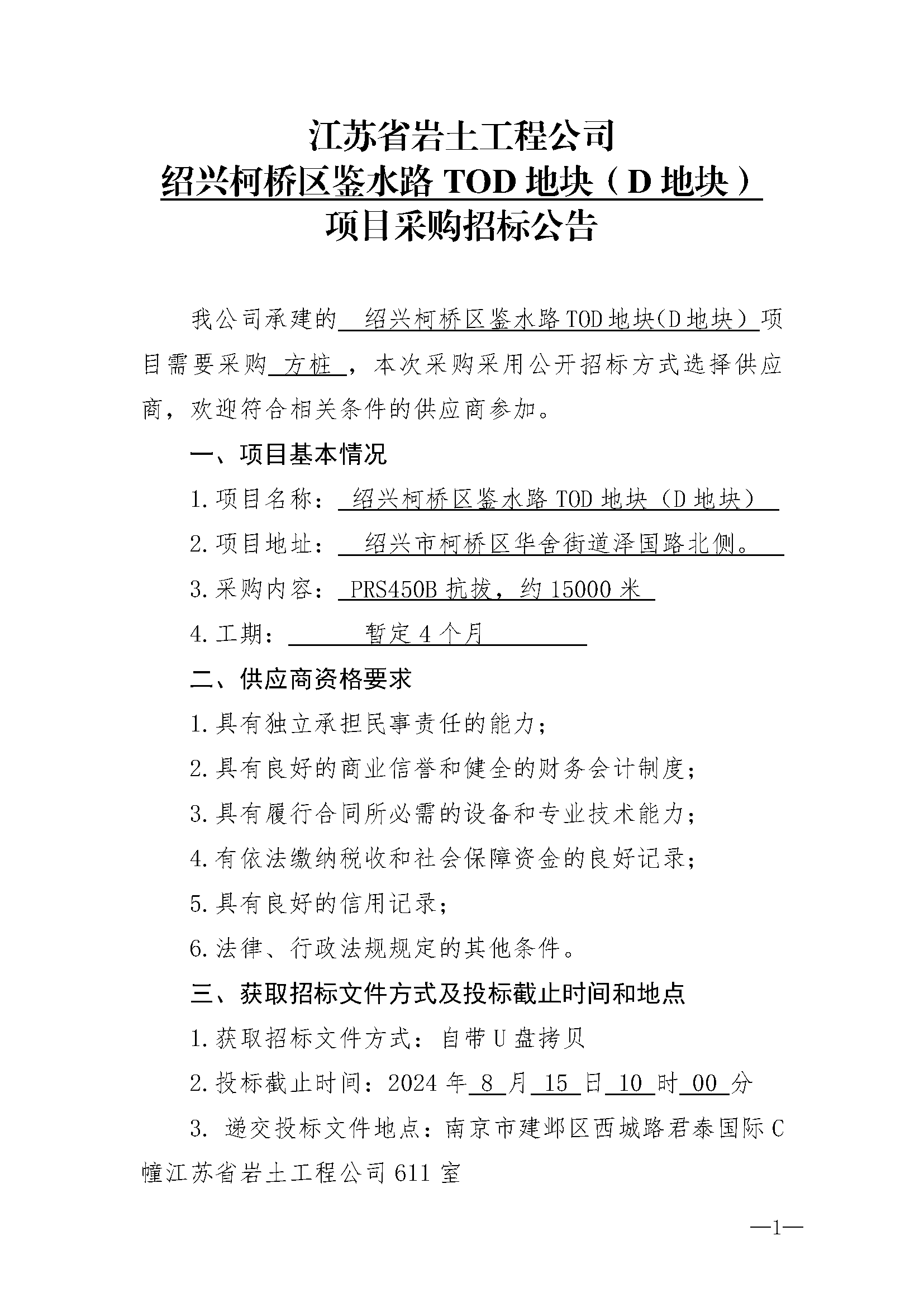 绍兴柯桥区鉴水路TOD地块(D地块)项目采购招标公告.pdf